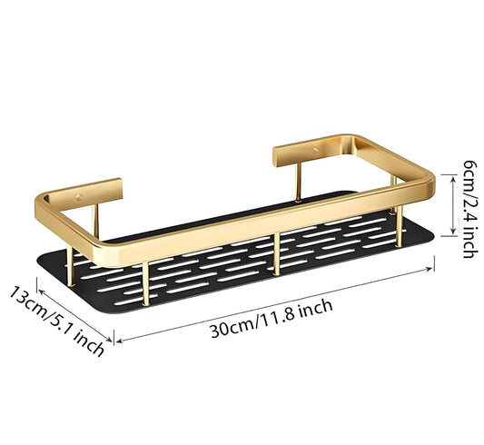 Wall-Mounted Bathroom Shelf Organizer – Heavy-Duty Rustproof Storage Rack with Adhesive Hooks | Space-Saving Shower Caddy for Toiletries, Shampoo, Soap & Essentials – Pack of 2 (Black Metal)