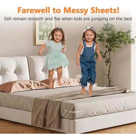 Adjustable Elastic Bedsheet Holders – Set of 4 Triangle Grippers with Strong Clips | Anti-Slip Bedsheet Fasteners for All Mattress Sizes – Keeps Sheets Tight & Wrinkle-Free All Night