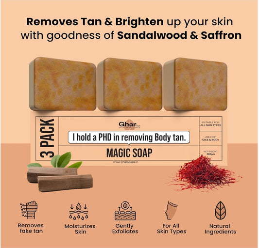 Ghar Soaps Sandalwood & Saffron Magic Soaps For Bath (300 Gms Pack Of 3) | Paraben Free | Chandan & Kesar Bath Soap | Handmade Soaps For Glowing | Skin Brightening Soap For Men & Women