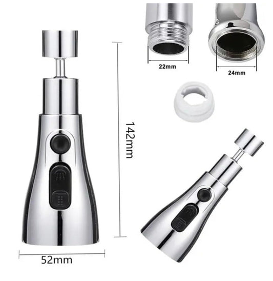 3-Mode Kitchen Faucet Sprayer Head – 360° Rotatable Universal Tap Nozzle Attachment with Stream, Spray, and Power Rinse Modes – Water Saving Faucet Aerator for Kitchen Sink, Pull Down Spray Head Replacement – Chrome Finish