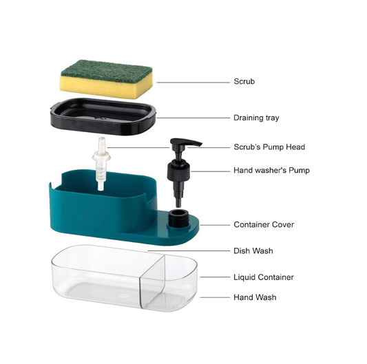 Dishwash Liquid Soap Dispenser with Sponge Holder | 2-in-1 Kitchen Sink Soap Pump for Easy Cleaning | Leak-Proof, Durable & Compact Design