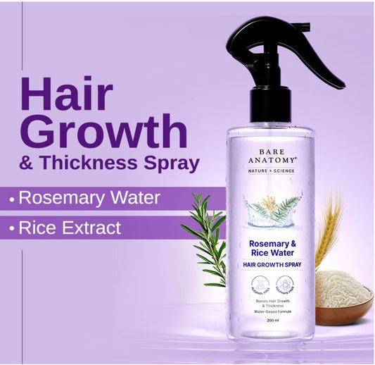 Bare Anatomy Nature X Science Rosemary Water Spray For Hair Growth & Thickness With Rice Water|100% Natural Extract|Soft & Smooth Hair|Controls Hairfall & Adds Shine|Non-Greasy & Fast Absorbing|200 Ml